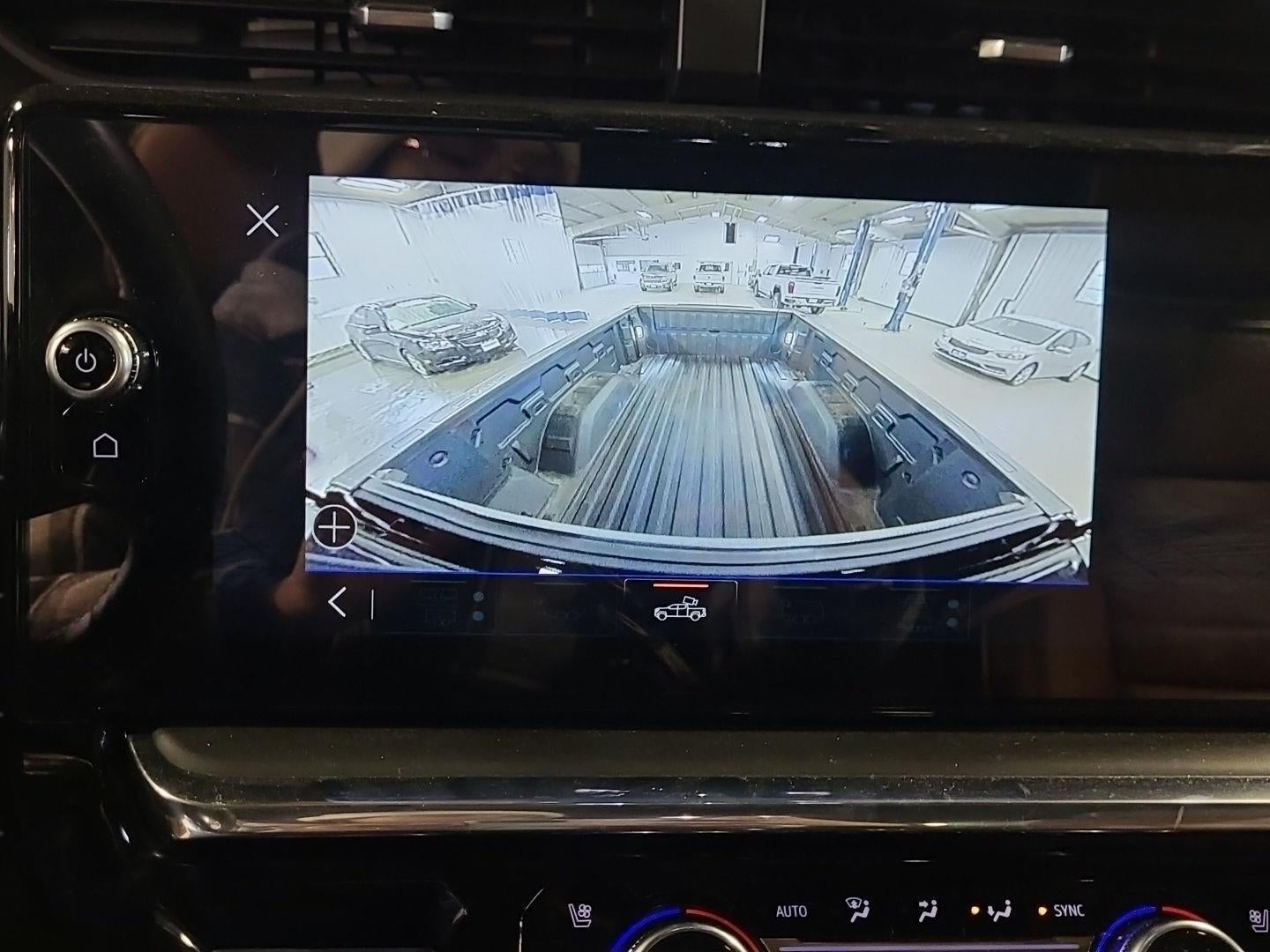- Allows driver to see inside the cargo bed on the infotainment display to help with 5th wheel or gooseneck hitching and to check cargo